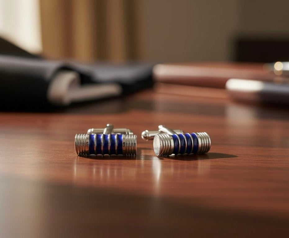 Este set de gemelos Cilindro Azul es el accesorio perfecto para los hombres con estilo. Hechos de un material resistente, estos gemelos cilíndricos en un tono azul elegante agregan un toque de sofisticación a cualquier atuendo. Además, su diseño único y moderno los hace ideales para cualquier ocasión.